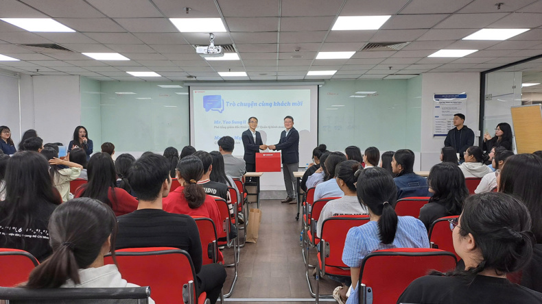 Buổi giao lưu có sự hiện diện của Ông Yeo Sung il - Phó Tổng Giám đốc Khối Quản lý & Hỗ trợ Kinh doanh và ông Jang Myung Whan - Giám đốc Tài chính, cùng đại diện các bộ phận CSR và HR.