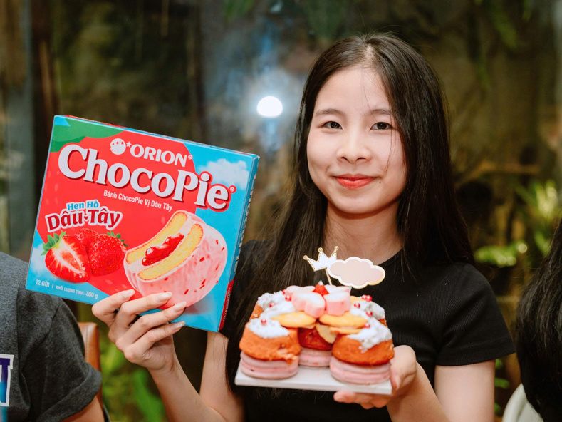 Điểm đáng chú ý tại workshop là người tham gia được trực tiếp trải nghiệm bộ ba sản phẩm trong bộ sưu tập phiên bản giới hạn “Hẹn hò dâu tây”, gồm ChocoPie vị dâu tây, Custas phô mai vị mâm xôi việt quất và Goute Cream vị dâu sữa chua. Đây cũng là lần đầu tiên Orion giới thiệu danh mục sản phẩm được phát triển theo concept đồng bộ, từ hương vị và thiết kế