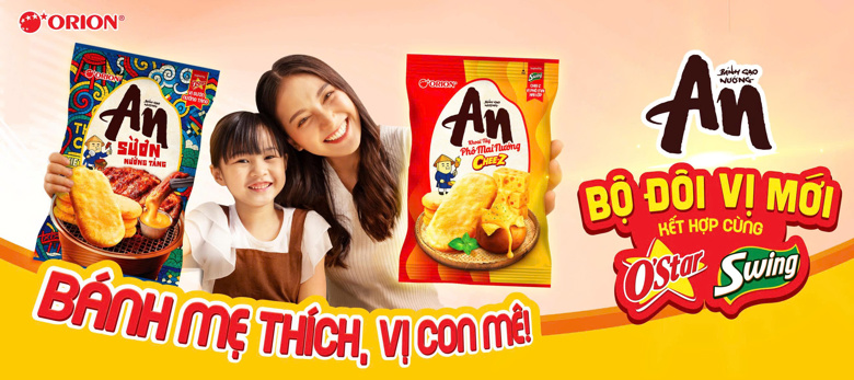 Nhằm tăng thêm sự kết nối giữa các thế hệ qua những bữa ăn nhẹ hay buổi liên hoan ấm cúng, Orion không ngừng sáng tạo bánh gạo nướng An để mang đến nhiều hương vị và trải nghiệm mới mẻ hơn. Từ đó, lần đầu tiên, thương hiệu An kết hợp cùng O’Star và Swing cho ra mắt hai hương vị độc đáo: Khoai tây phô mai nướng và Sườn nướng tảng, đậm chất hiện đại, cá tính, được giới trẻ yêu thích.