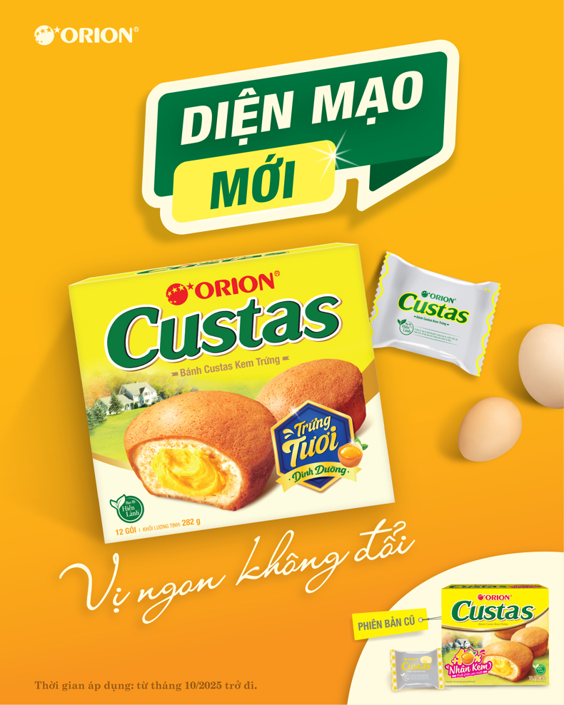 Đại diện Orion chia sẻ: “Custas là một trong những sản phẩm gắn liền với thương hiệu của Orin và gắn bó lâu dài với người tiêu dùng Việt Nam. Việc đổi mới thiết kế lần này không chỉ giúp Custas trở nên hiện đại và dễ nhận diện hơn, mà còn thể hiện cam kết của Orion trong việc liên tục lắng nghe người tiêu dùng, cải tiến sản phẩm và nâng cấp trải nghiệm. Chúng tôi tin rằng diện mạo mới của Custas sẽ mang lại nguồn cảm hứng tích cực và tiếp tục đồng hành cùng các gia đình Việt trong những khoảnh khắc ngọt ngào mỗi ngày.”
