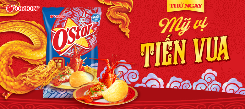 Orion tìm nguồn cảm hứng cho sản phẩm mới từ ẩm thực cung đình Huế, cái nôi của những món ăn tinh tế, lâu đời, đậm giá trị truyền thống từng được dâng lên hoàng tộc. Từ đó, cho ra đời sản phẩm snack mới O’Star Tôm Hùm Cháy Tỏi với ba giá trị đặc trưng. Đầu tiên là cảm hứng từ những buổi yến tiệc xa hoa, nơi từng món ăn đều được chuẩn bị bằng sự tỉ mỉ và tinh tế. Thứ hai, tinh thần thượng phẩm tiến vua, gợi hình ảnh những món ăn cao cấp chỉ dành cho bậc đế vương. Và cuối cùng là điểm nhấn họa tiết văn hóa truyền thống được thể hiện trên bao bì, tạo nên diện mạo sang trọng và mang đậm dấu ấn nghệ thuật Việt.